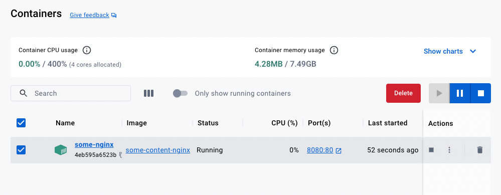 docker run --name some-nginx -d -p 8080:80 some-content-nginx